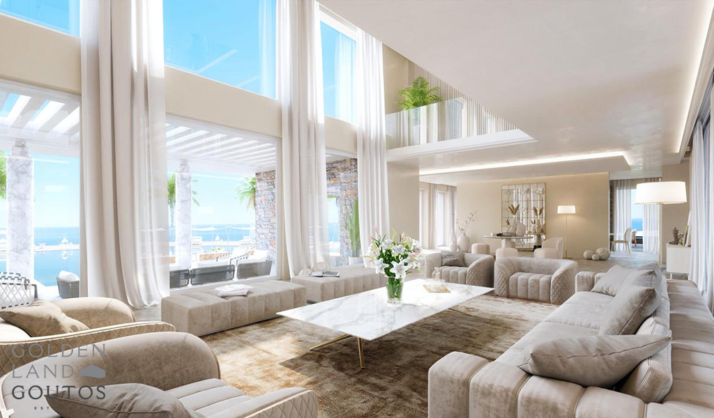 This extraordinary Hyper-Lux Villa in Mykonos is a rare waterfront estate set across an expansive landholding of approximately 23,000 sq.m., with total built areas exceeding 1,750 sq.m. Positioned in one of the most sheltered and prestigious coastal areas of Mykonos, the property enjoys direct proximity to the sea, just a few meters from the shoreline, offering uninterrupted views and a serene, private environment.
