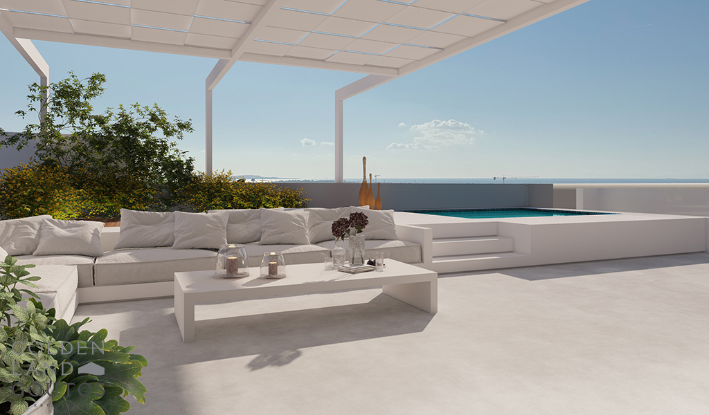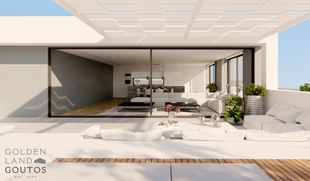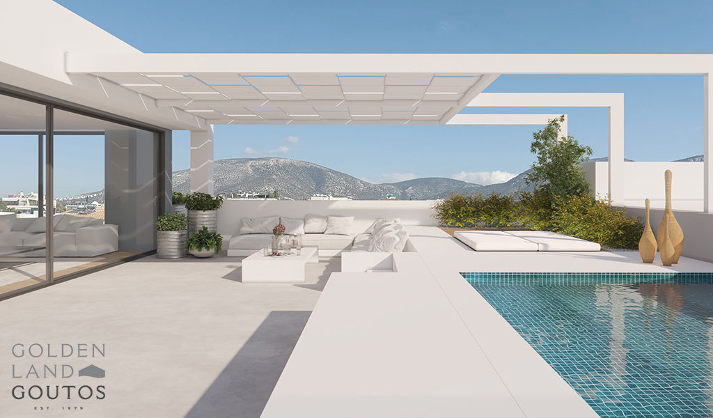 - A penthouse maisonette of 208 sq.m. with four bedrooms, a private rooftop pool (roof garden of 110,85sqm & private pool of 32,3sqm) & 3 underground parking places and stunning unobstructed sea views