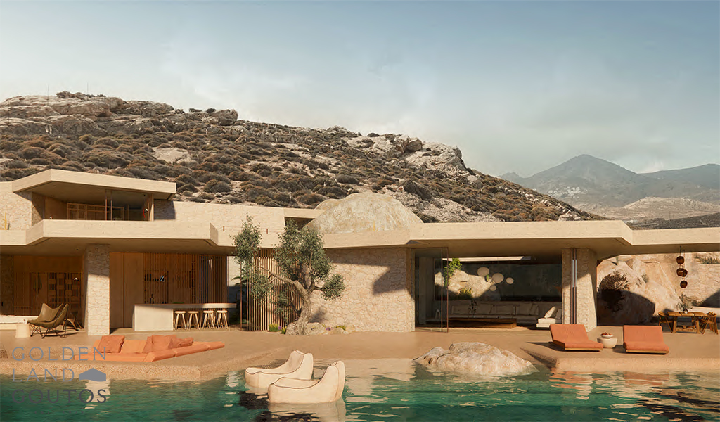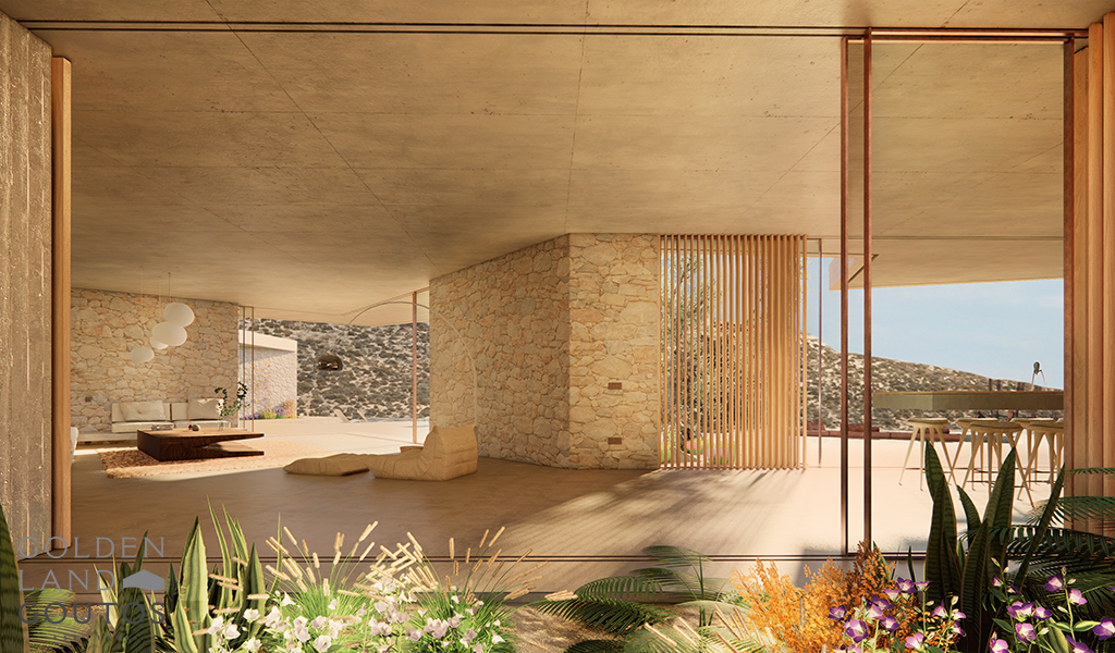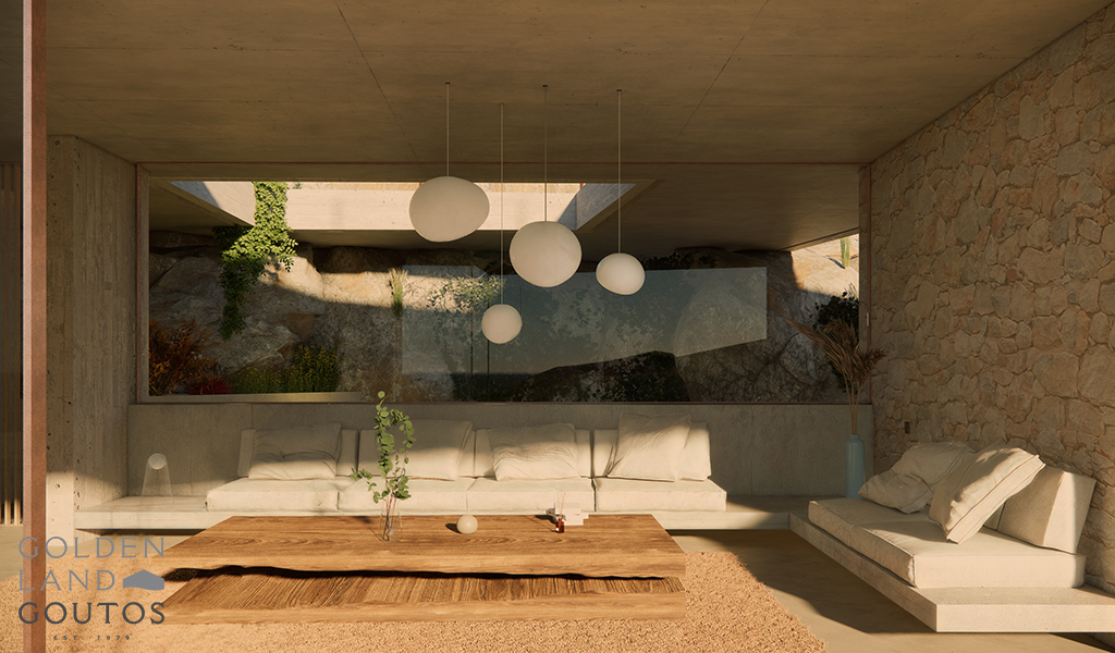 The villa’s privileged position allows residents to enjoy uninterrupted panoramic views of the deep blue Aegean Sea from almost every corner of the property. The surrounding landscape remains untouched and serene, creating a peaceful retreat ideal for relaxation, privacy, and connection with nature.